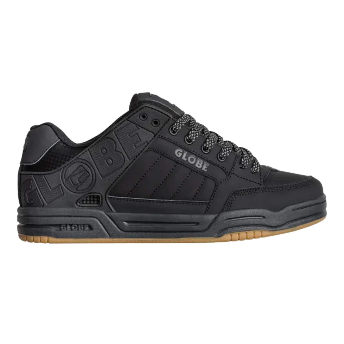 The Globe Tilt in Dark Shadow/Phantom embraces the brand’s timeless skate silhouette. It integrates a molded TPR external collar for increased support and long-lasting durability, alongside Globe’s Strobo cup sole enhanced with an S-Trac™ sole pattern to deliver superior grip and board feedback. Crafted from a combination of action and synthetic nubuck, textile, and TPR materials, this version is offered in smaller sizes.
