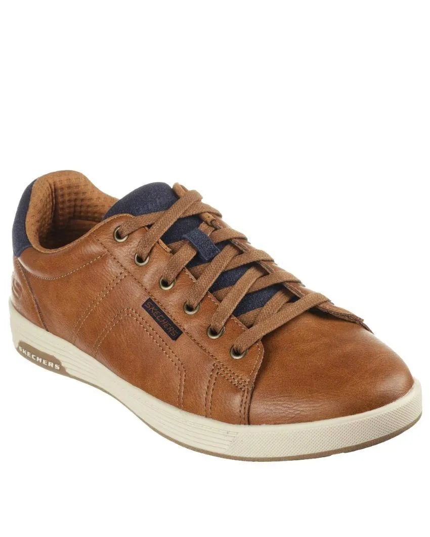 The Skechers® Cavell - Hensley merges contemporary style with exceptional wearability. Built on a Classic Fit™ platform, this sneaker showcases a refined faux-leather construction complemented by thoughtful stitching accents. The traditional lace-up closure ensures a secure fit, while the integrated Skechers Air-Cooled Memory Foam® insole delivers responsive cushioning and temperature regulation for all-day comfort.